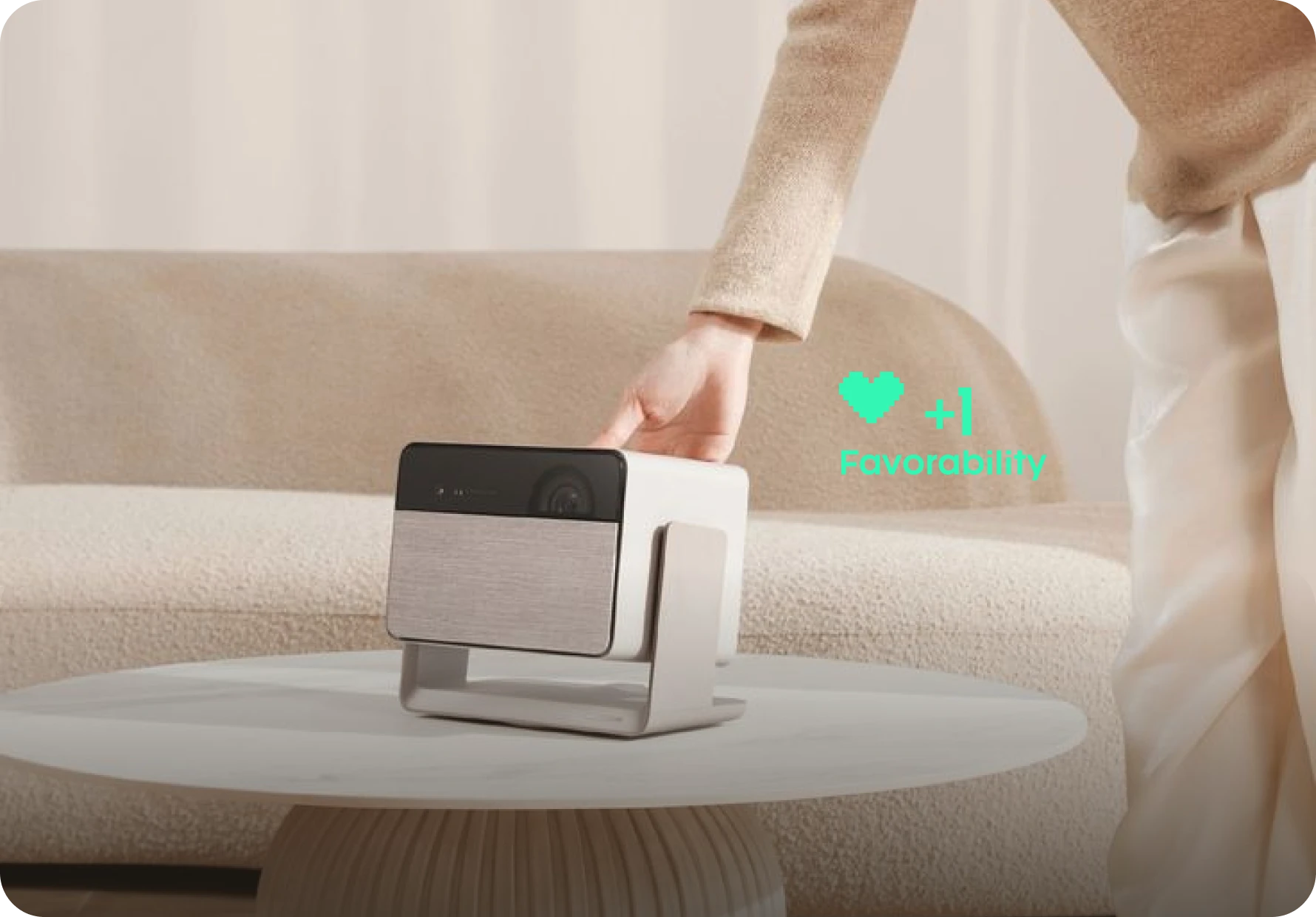 & SensitivityPortrait is in tune with the world around you. It senses changes in the environment-like shifts in temperature or light-and responds accordingly, creating a truly interactive experience.Whether adjusting to your surroundings or reaching out when you're near, YahYah is always aware of you, making it a part of your living space.